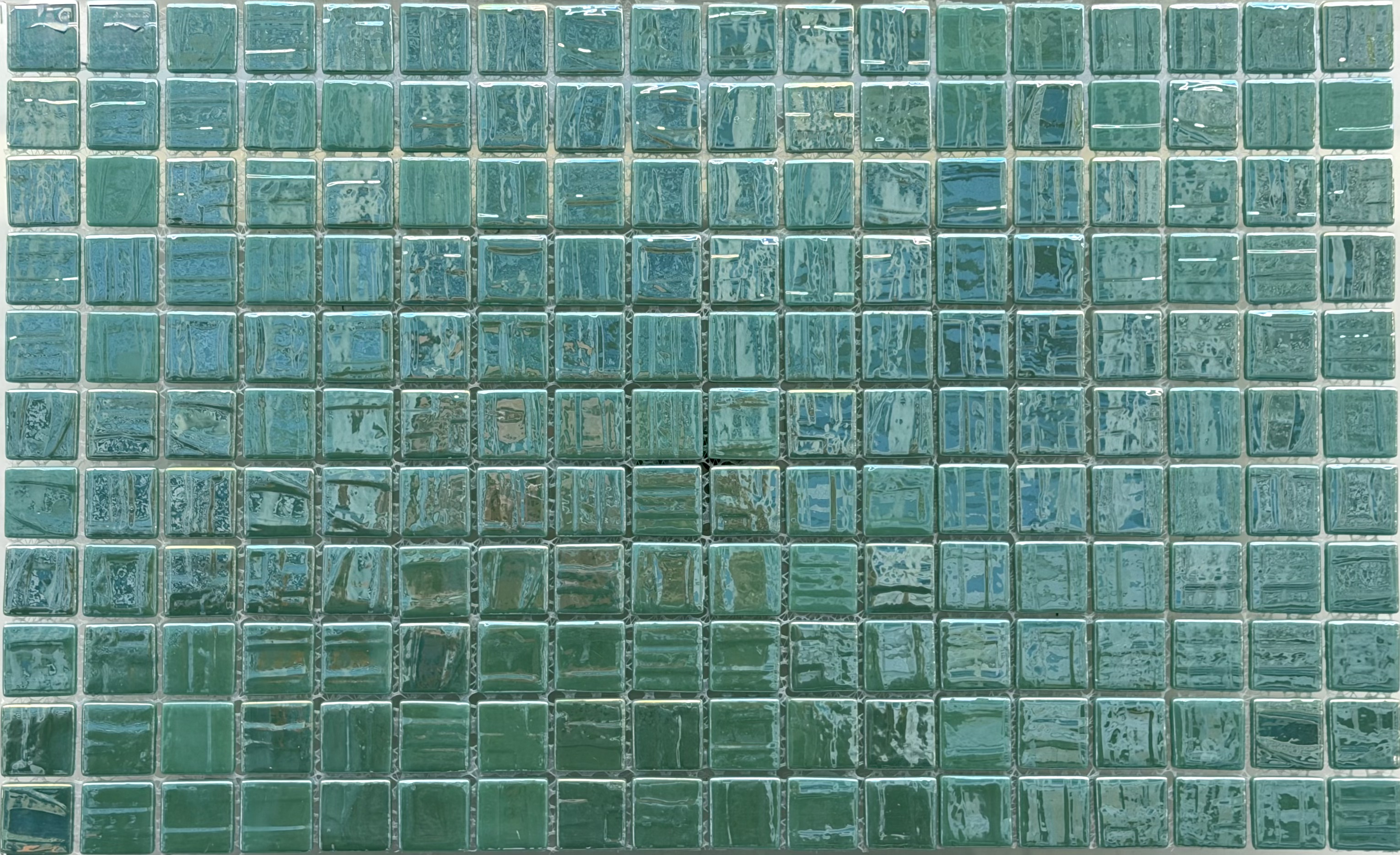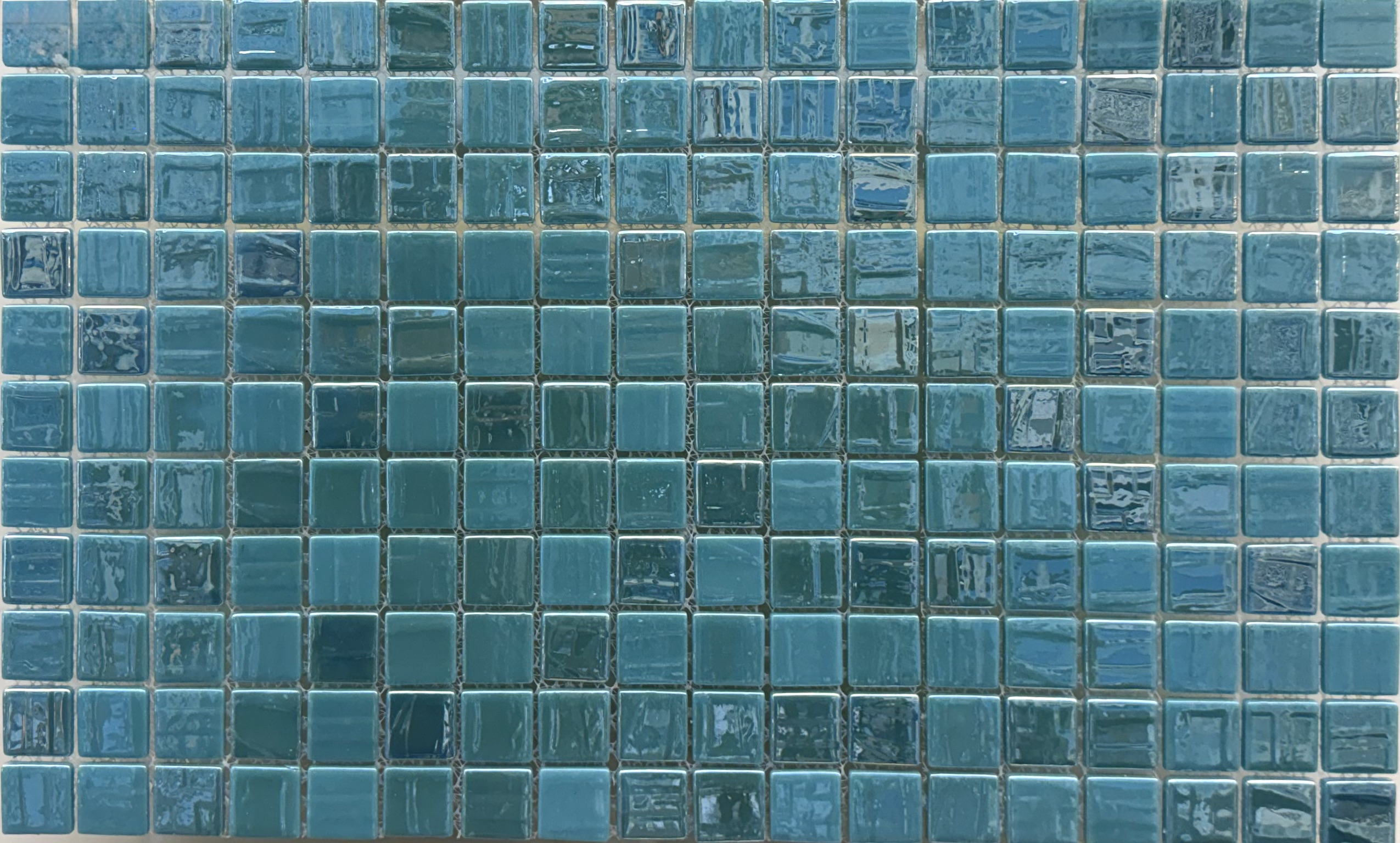 سرامیک شیشهای استخری پشت توری میکس سبزآبی تیره و سبزآبی روشن برند روکارنو AM123