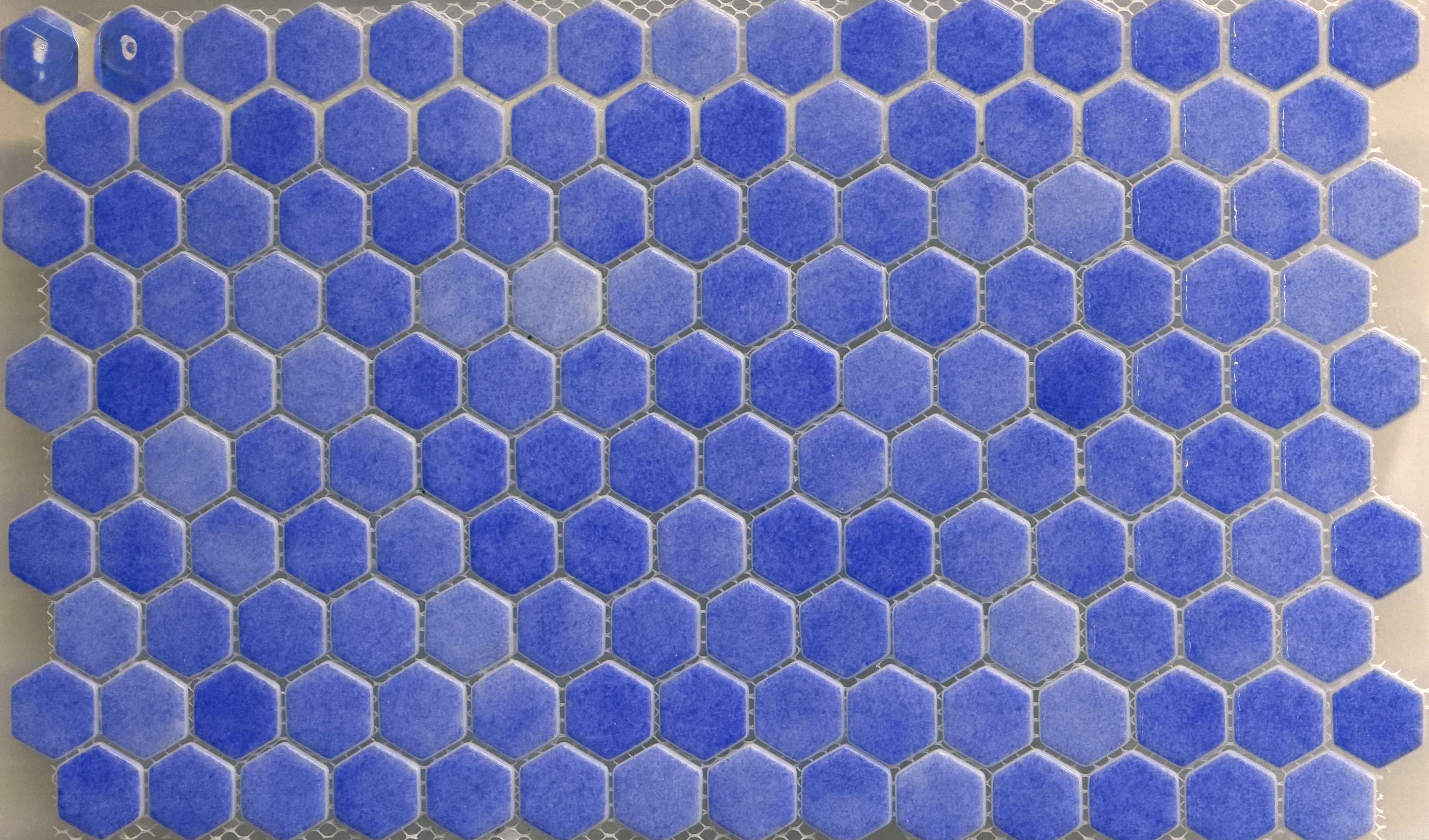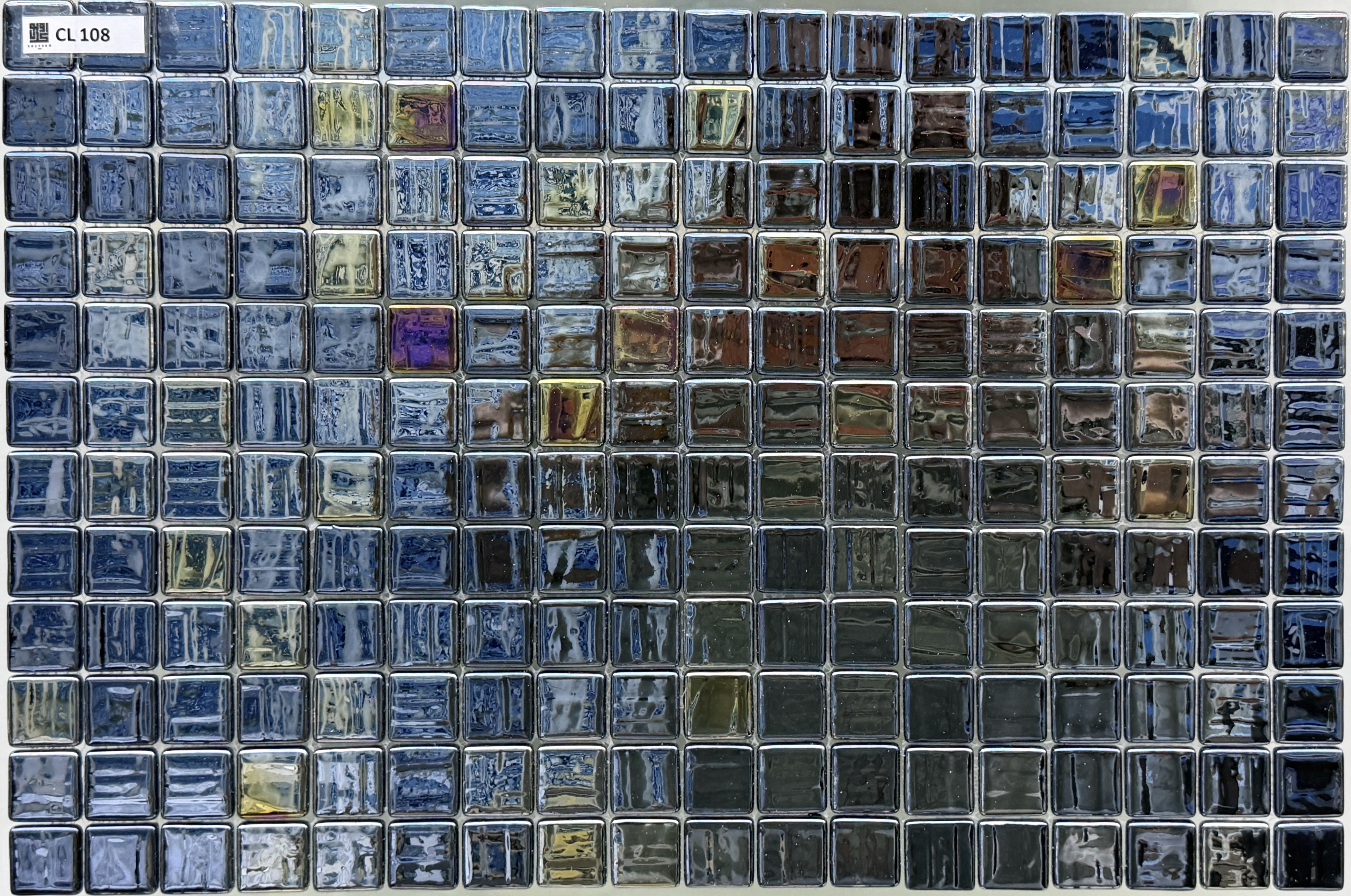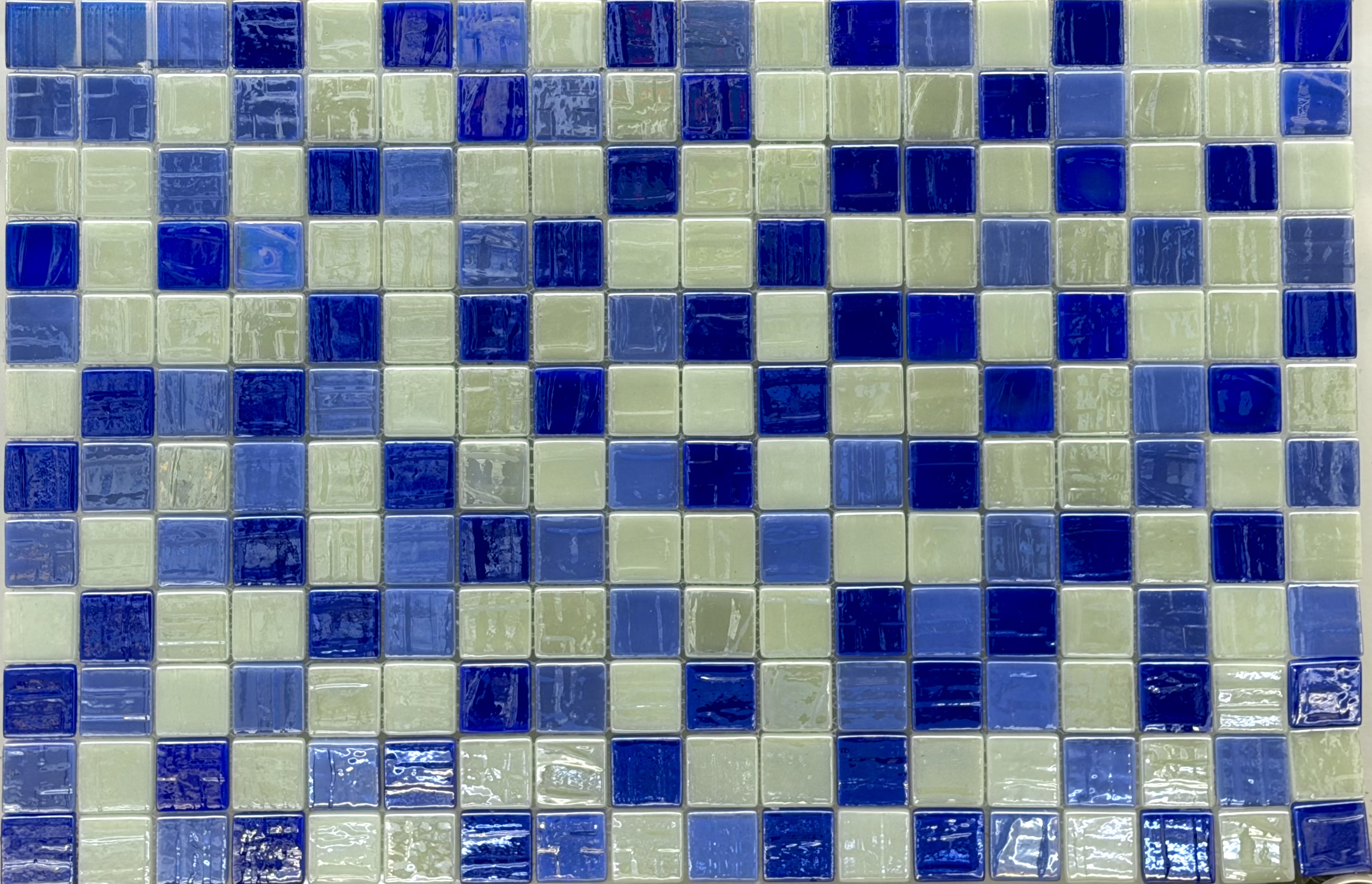سرامیک شیشهای استخری پشت توری میکس آبی ها و سبزآبی برند روکارنو AM1۰۸