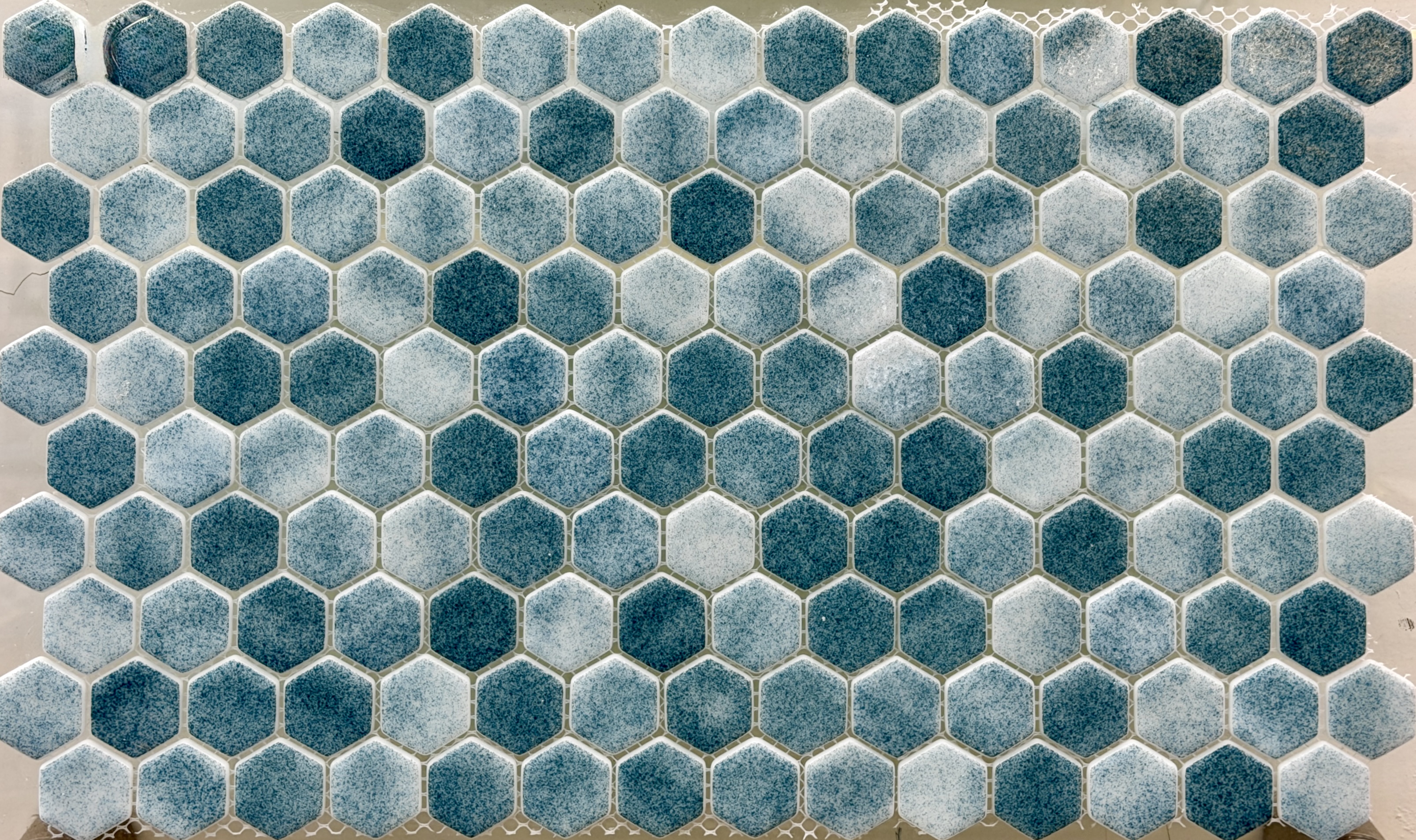 سرامیک شیشهای استخری پشت توری میکس سفید سبزآبی برند روکارنو AM۹۰۳