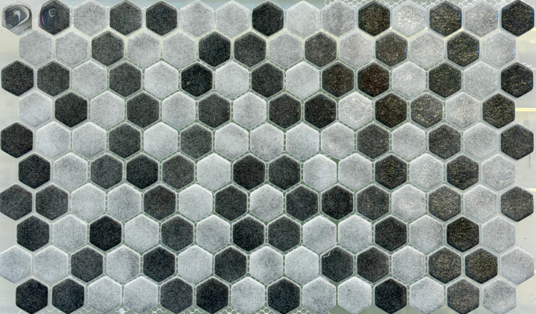 سرامیک شیشهای استخری پشت توری ضد اسید میکس 6 ضلعی فول بادی طوسی ها برند روکارنو HM135