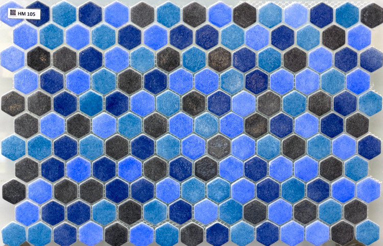 سرامیک شیشهای استخری ۶ضلعی میکس ابروبادی طوسی تیره، سبزآبی تیره، آبی و سرمهای مدل HM105 برند روکارنو، یکی از خاصترین و حرفهایترین ترکیبهای رنگی در سری سرامیکهای شیشهای استخری محسوب میشود. فرم ۶ضلعی این محصول، با شکستن الگوی تکراری سرامیکهای مربعی، سطحی مدرن، چندلایه و کاملاً طراحیشده به استخر میدهد.